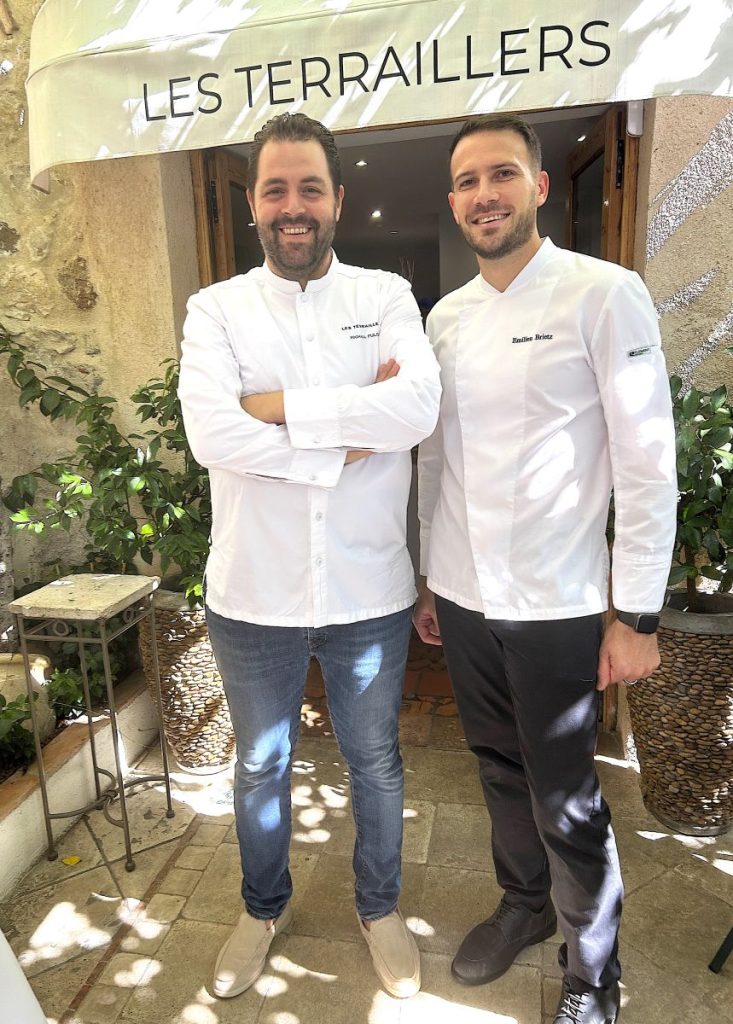 Les Terraillers,11 Chemin Neuf, Biot. Tél : 04 93 65 01 59. Menus 107, 127 et 175 € (menu surprise en 8 services). Formule déjeuner 75 € sauf dimanche et fériés. Fermé lundi, mardi.