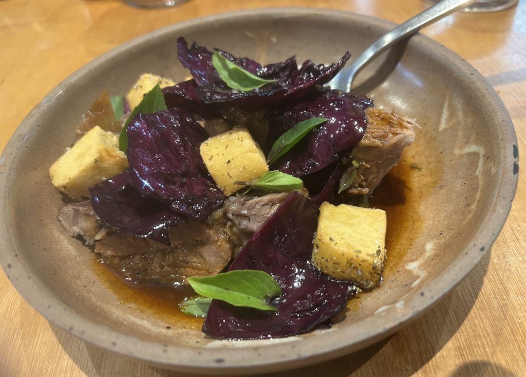 Aujourd’hui, le calme est revenu mais Pompon est une affaire qui tourne et qui régale avec une «bonne cuisine», libérée dès l’entrée aux agnolotti, ricotta et citrons au sel, potimarron et poutargue de Martigues, avant un carré végétal à la composition délicate, courgettes violons, premiers poireaux, amandes, sauce taleggio (au lait cru de vache de la région de Bergame) et vin jaune. Puis, le jour de mon passage, comme la clé de voûte de ce casting cannois, l’épaule d’agneau confite, chou rouge et panisses, jus à l’harissa au piment ancho, sagement épicé et qui vous faisait dire, en douce, « I love Pompon ! ».